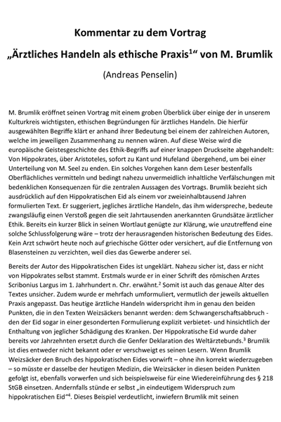 Kommentar zum Vortrag "Ärztliches Handeln als ethische Praxis" von M. Brumlik