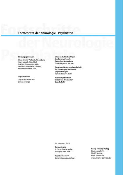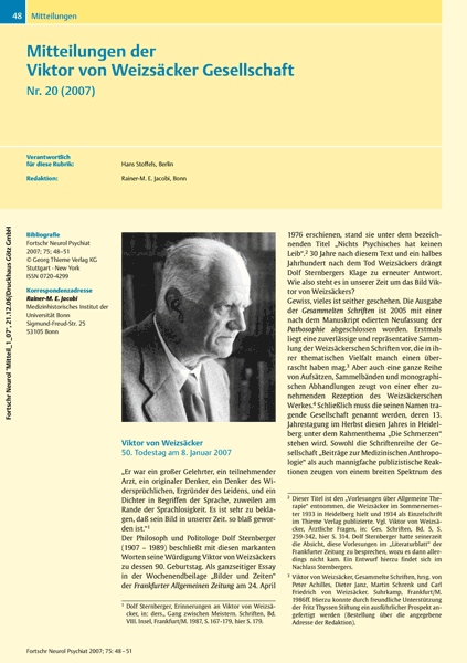 Die Mitteilungen der Viktor von Weizsäcker Gesellschaft erscheinen seit 1997 als eigenständige Rubrik in der Zeitschrift "Fortschritte der Neurologie, Psychiatrie" im Georg Thieme Verlag Stuttgart.